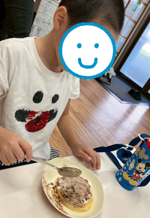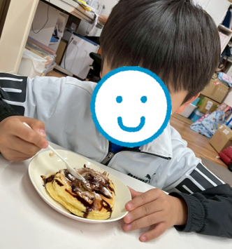 トッピングが終わると美味しそうにホットケーキを食べる子どもたちでした( *´艸`)