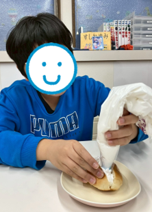 また果物を乗せる量によって生クリームの量も調節しなければいけないため、1つ先を考えて行動する練習にもつなげています。