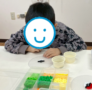 すごい集中力で次々にビーズを置いていく子どもたち(^^♪