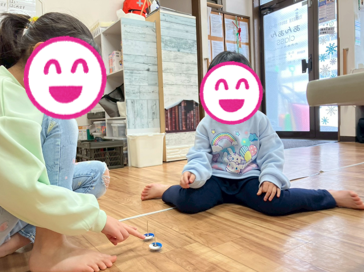 途中、どのコマが最後まで回っているのか勝負するなど楽しんでいる様子の子どもたちでした(^^♪