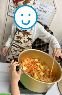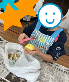まだ、ピーラーの使い方に慣れておらず少し時間がかかっている子を見つけ、「ゆっくりでいいよ!」「手、気をつけてね!」「上手!!」とピーラーの順番待ちしていた子どもたちから声援が☺頑張っているお友達を応援し見守る姿、とても素敵でした✨