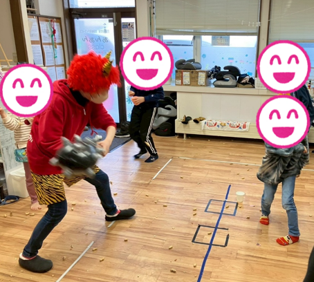 初めは鬼に豆を投げることに夢中で掛け声を忘れていた子どもたち😲